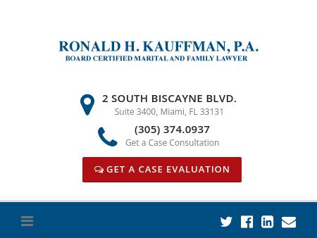 The law firm of Ronald H. Kauffman, A Professional Association, in Miami, Florida, represents clients in the full spectrum of family law issues. Call 800-556-2329.