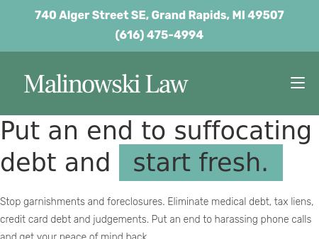 12. Michael M. Malinowski PLC Grand Rapids Bankruptcy Attorney | Michael M. Malinowski PLC I have more than 25 years of experience helping clients find peace of mind through bankruptcy. Call 616-259-4328 for a free, confidential and casual meeting.